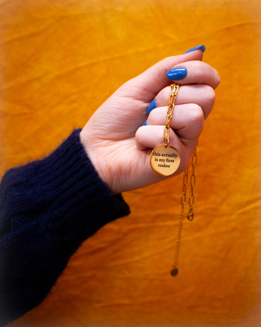 "This actually is my first rodeo" Engraved Necklace