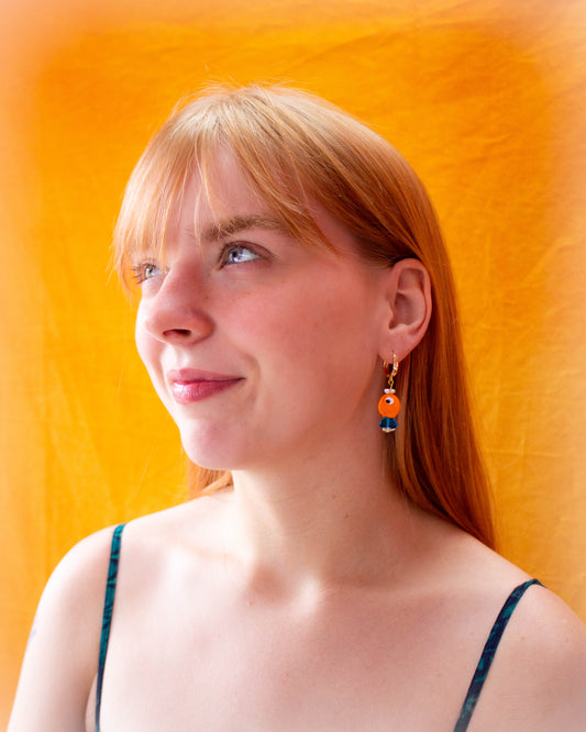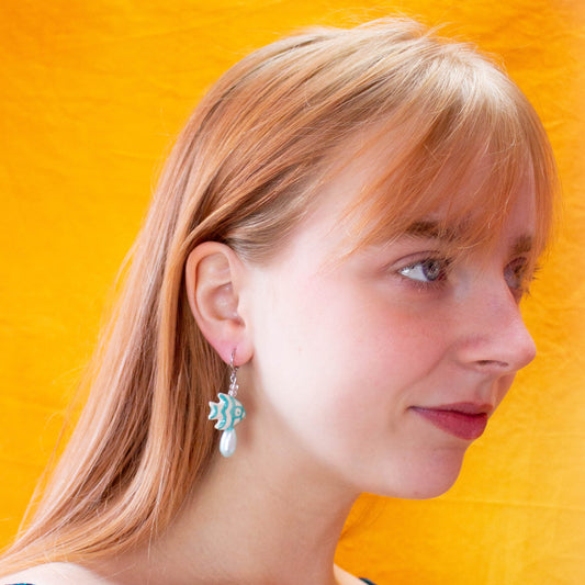 Glass Beaded Blue Fishy Friend Earrings