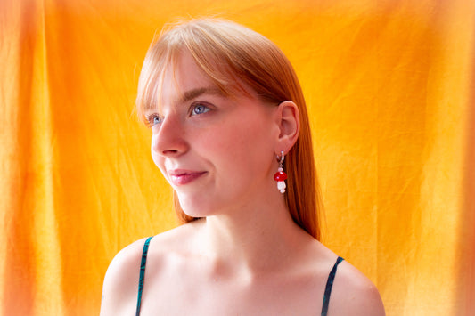 Sold outGlass Beaded Mushroom Earrings