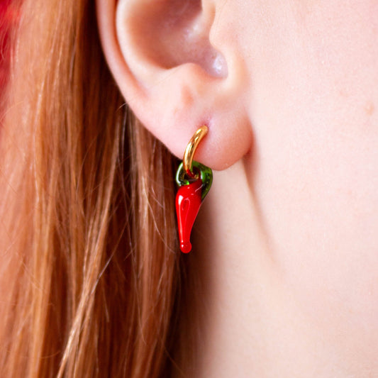 Glass Beaded Chili Pepper Earrings 2-in-1 pair