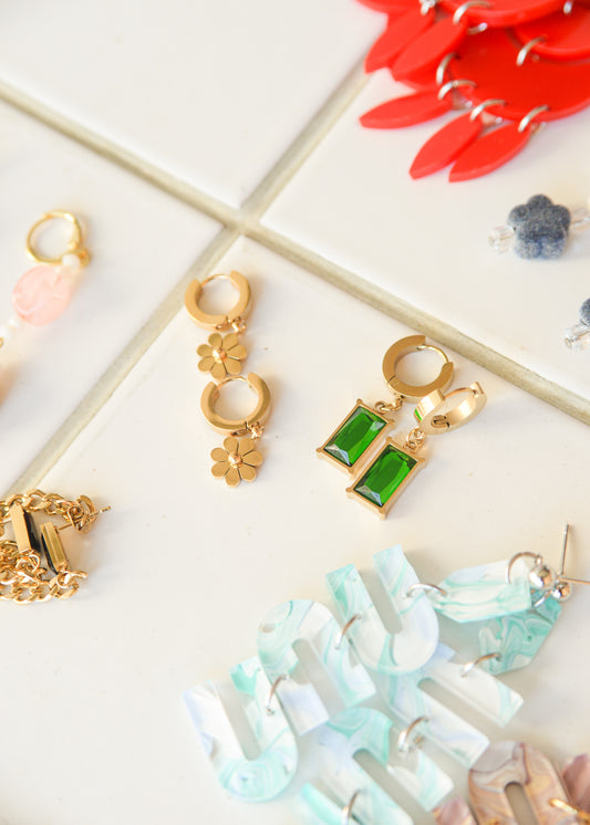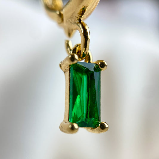 Green Gemstone Titanium Huggie Earrings