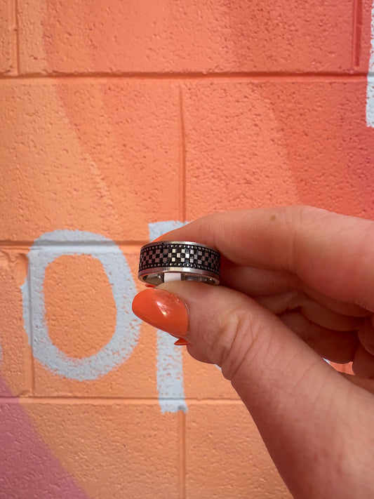 Checkered Black Enamel Titanium Ring