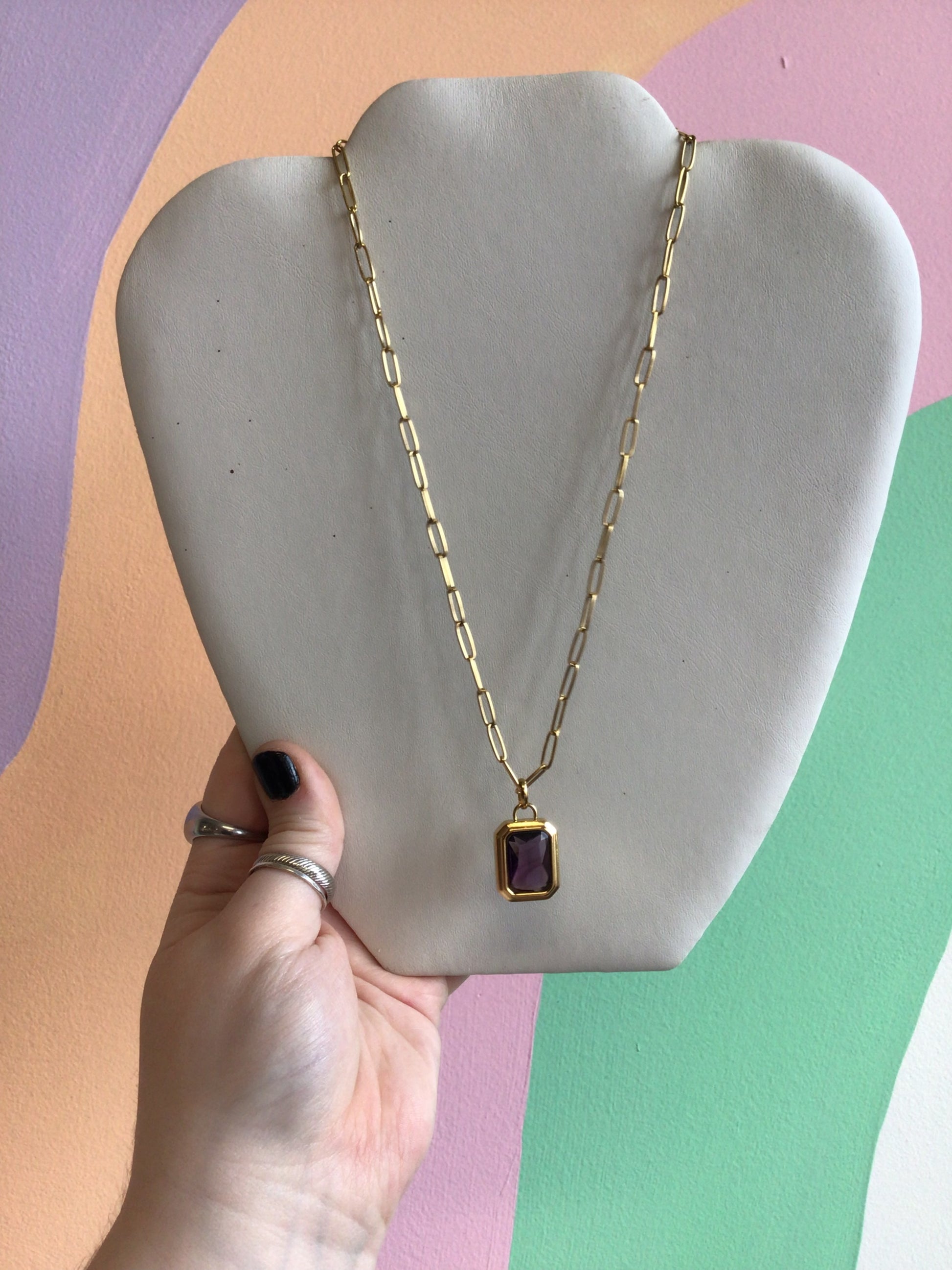 Emerald Cut Gem Charm Necklace