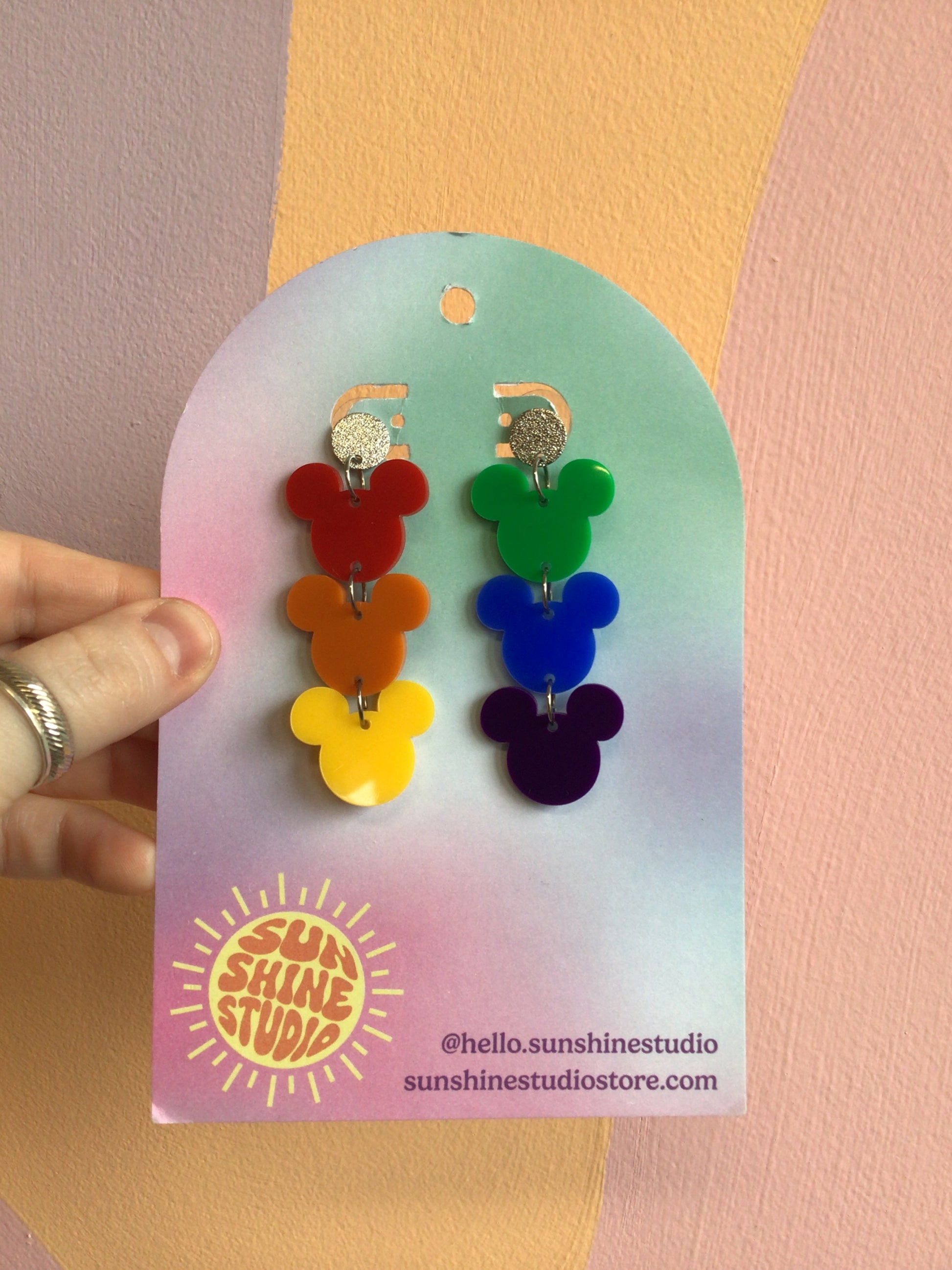 Rainbow Mickey Dangle Earrings