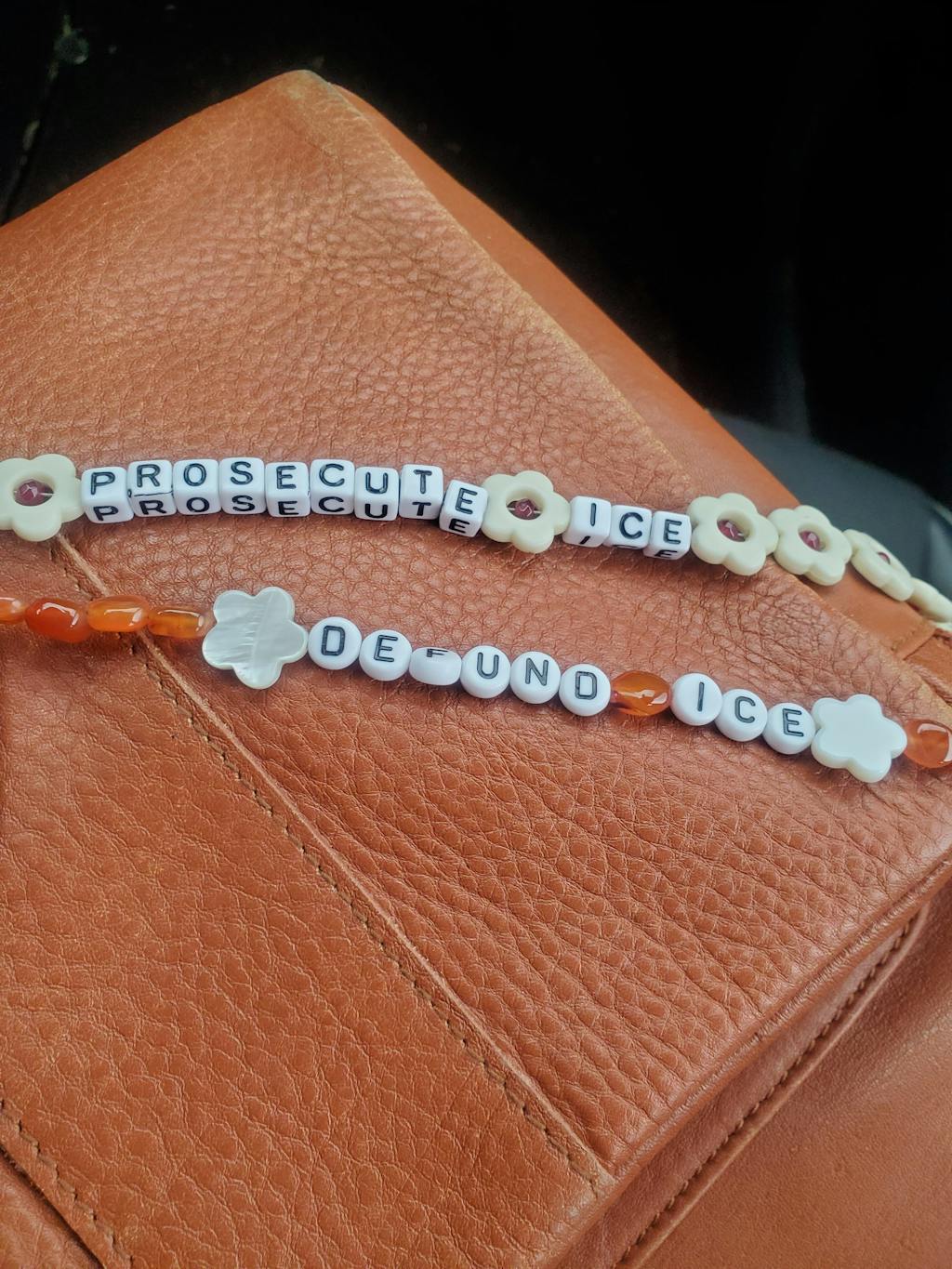 Defund ICE orange gem flower bag or phone charm